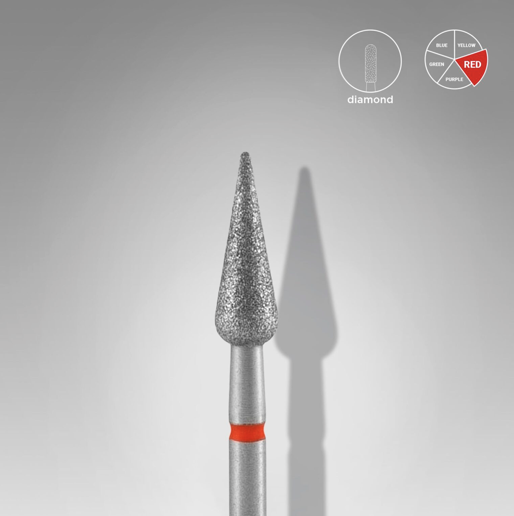 Foret à ongles diamant, « Poire pointue », rouge, diamètre 4MM, partie active 12mm